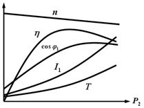 1、三线异步电机工作特性,就是同步转速到临界转速之间的稳定工作区; 2、表示电机输出功率由空载到最大转矩之间输出功率P2与: 1)转速的关系n 2)效率的关系η 3)cosφ的关系 4)电机凳子电流I1的关系 5)电机转矩T的关系 3、首先说明,异步电机的工作区,就是机械特性曲线上的“稳定区”; 4、看电流曲线是一个上凹的曲线,说明电流变化率有明显增大的趋势,反过来说明越过临界转速、转矩最大值,电流迅速下降的趋势; 5、功率因数曲线,反过来说明启动速度越过临界转速、转矩最大值,功率因数明显增大,无功电流迅速下降的趋势; 6、所以异步电机启动过程中,速度越过临界转差、最大转矩,标志异步电机进入了正常的工作区; |